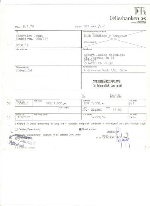 „W jaki sposób były przerzucane do Polski?” W różny. Na samym początku przez banki. Potem przez zaufanych ludzi i przez specjalnych kurierów, np. przez wspomnianego już w innym miejscu Jerzyego Brzezińskiego. Były też przesyłane np. przez żonę Władka, Janinę Gauza, będącą w kontakcie z Tadeuszem Jandziszakiem we Wrocławiu.